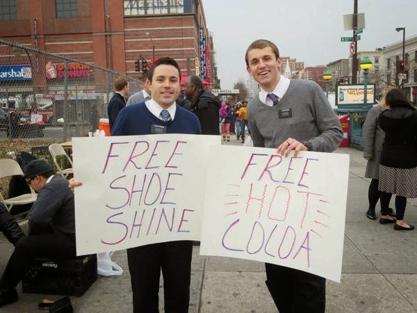 "We noticed as we were shining people's shoes, we had a lot of time to talk with people, and as the conversation began we started talking about how people's days were, and it led in to a more gospel-centered conversation, which is exactly what they needed." Elder James Pickard